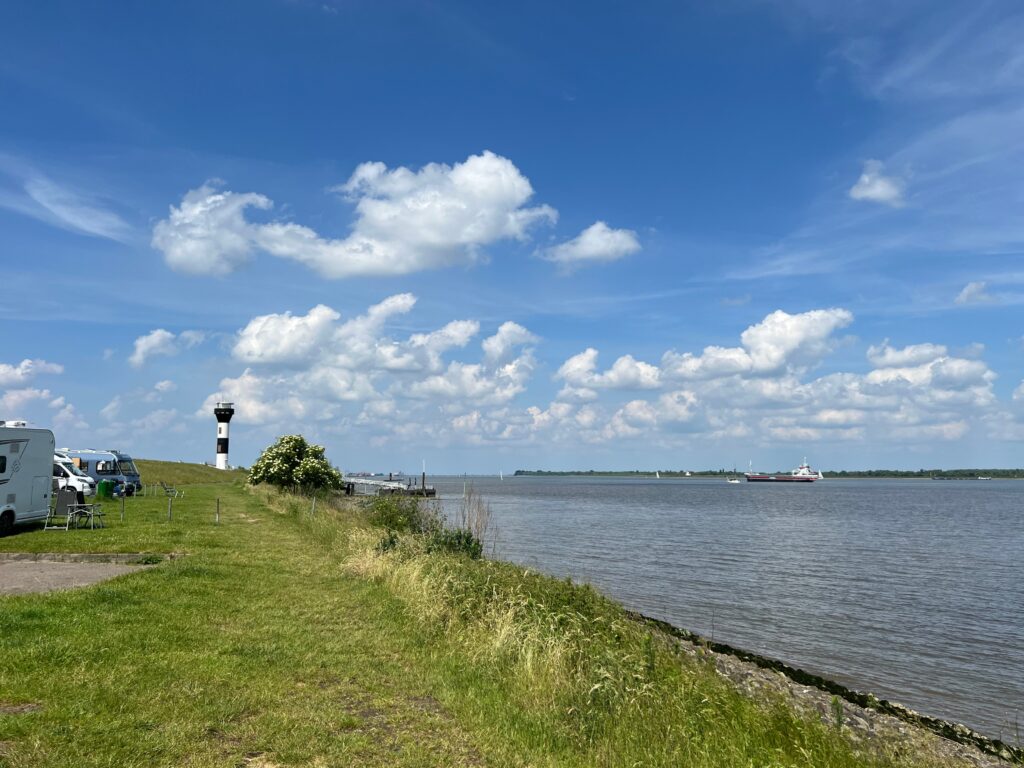 Wir sind schon seit ein paar Tagen unterwegs. Haben Freunde auf dem Weg nach Kiel besucht und genießen einen tollen Stellplatz an der Elbe in Twielenfleth im alten Land bei Hamburg.
