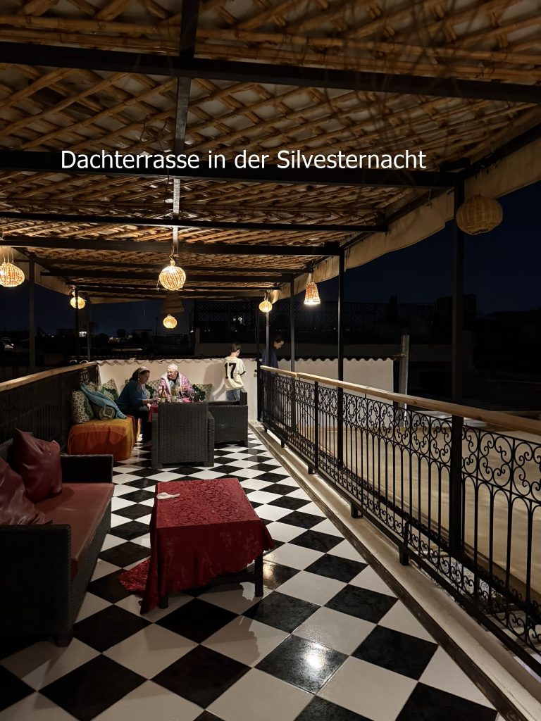 Die Nacht über Marrakesch blieb erstaunlich ruhig. Es gab nur ein offizielles Feuerwerk, das man aus der Ferne sehen konnte. Wir haben unsere guten Wünsche an Familie und Freunde verschickt und sind dann ins Bett gegangen.