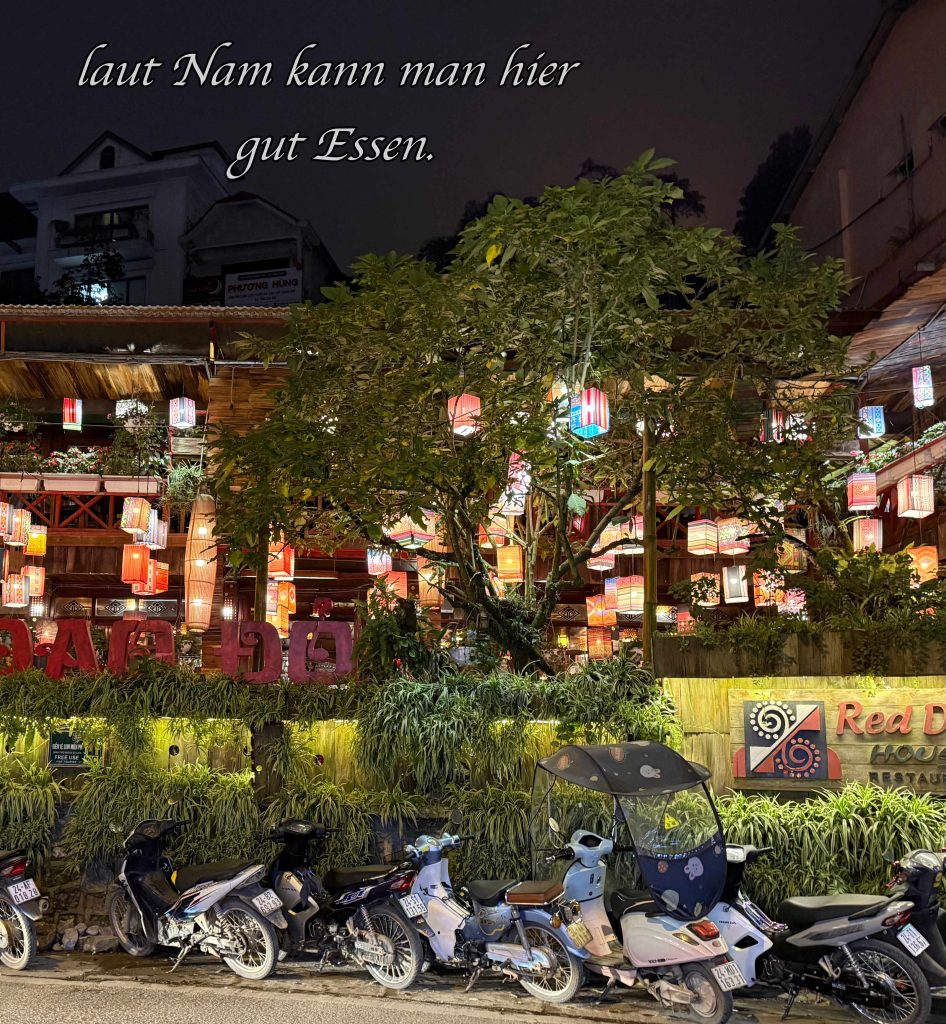 Wieder zurück, inzwischen schon fast stockdunkel, fanden wir das von unserem Reiseführer empfohlene Restaurant – und genossen ein fantastisches vietnamesisches Essen mit sehr nettem Ambiente. Richtig satt und zufrieden machten wir uns anschließend auf den Weg zum Hotel.