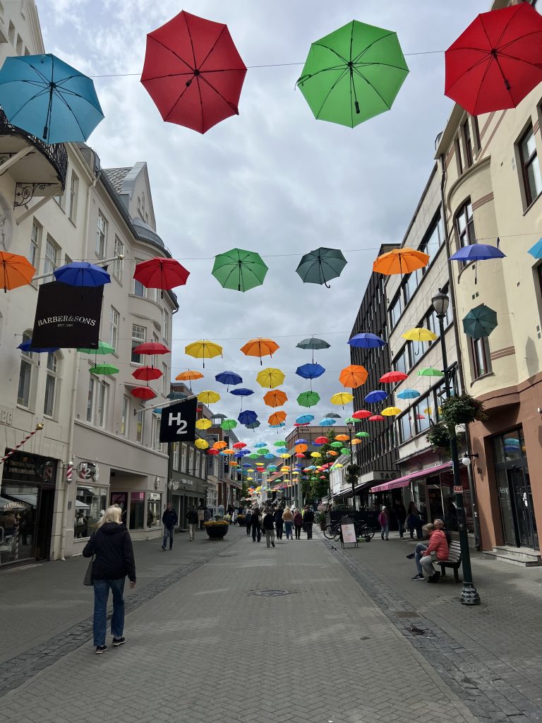 Highlight am Rande: die Regenschirmgasse. Wer braucht schon Regen, wenn’s bunte Schirme über den Kopf gibt? Außerdem sind wir über einen kleinen Markt gestolpert, mit leckeren Sachen zum Probieren und natürlich auch zum hemmungslosen Kaufen (wir sagen nur: Käse, Marmelade, Glück).